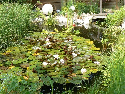 Gartenteich(in voller Blüte)